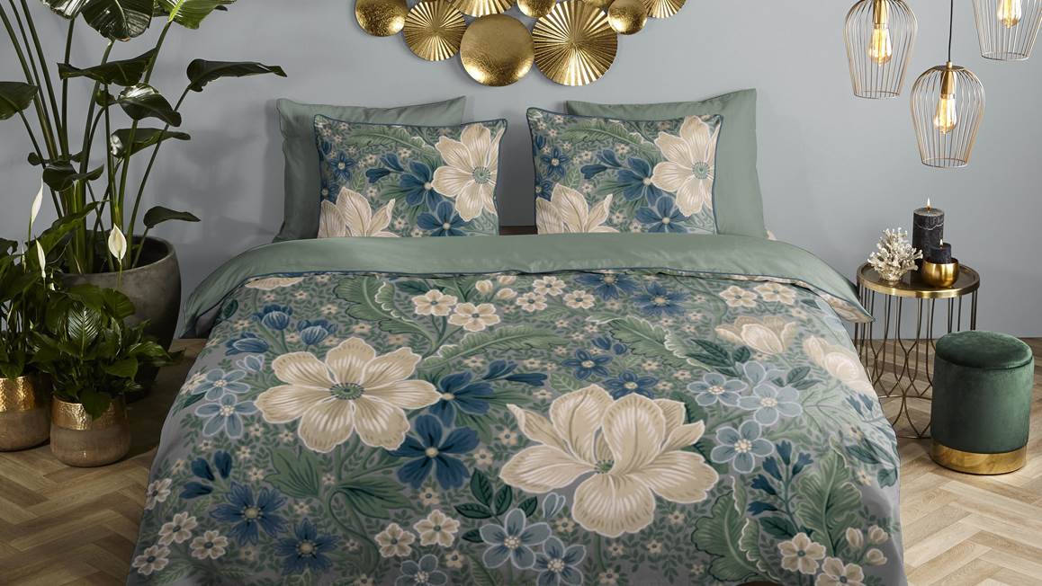 Donnez de l’allure à votre coin de nuit, grâce à la housse de couette Alessia de Descanso ! Son dessin floral raffiné se décline dans divers tons de bleu, vert gris et blanc cassé. Rehaussées d’élégantes finitions en pointe de bourdon, la housse de couette et ses taies d’oreiller réversibles (dos uni) séduisent par leur design chic et contemporain.