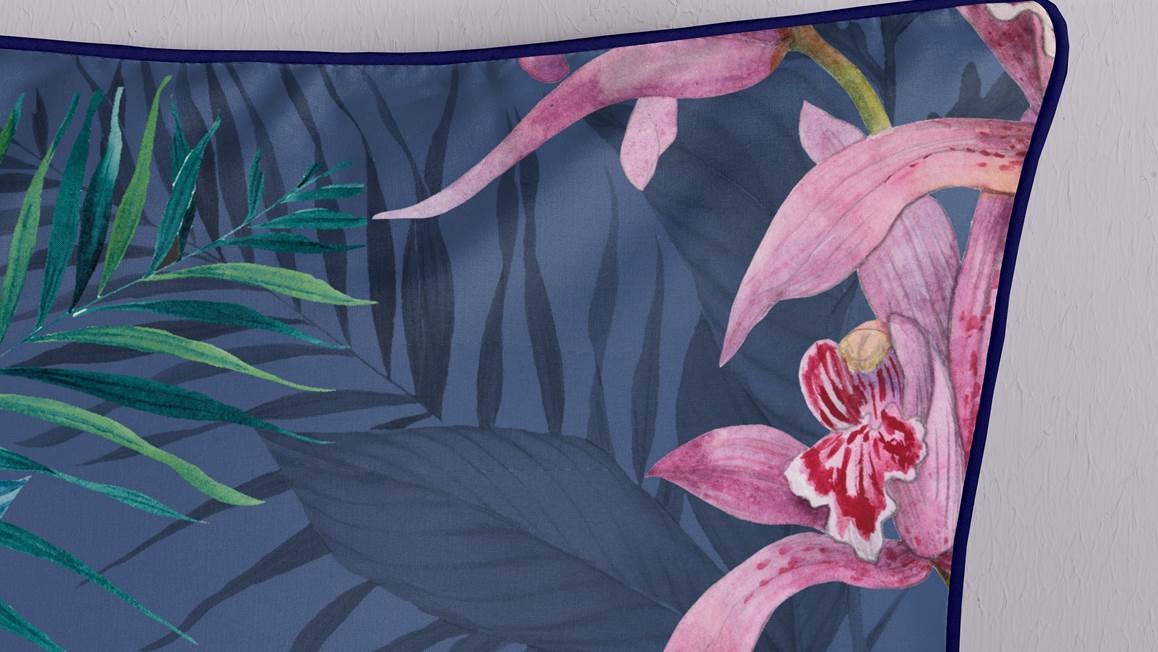 La housse de couette Mae de Descanso au coloris Bleu transforme votre coin nuit en une oasis de sérénité. Superposées les unes sur les autres, les fleurs d’orchidée et les feuilles tropicales donnent de la profondeur à la déco. Pour souligner son design chic et contemporain, cette parure de lit a un dos uni bleu. On aime la finition sophistiquée en pointe de bourdon !