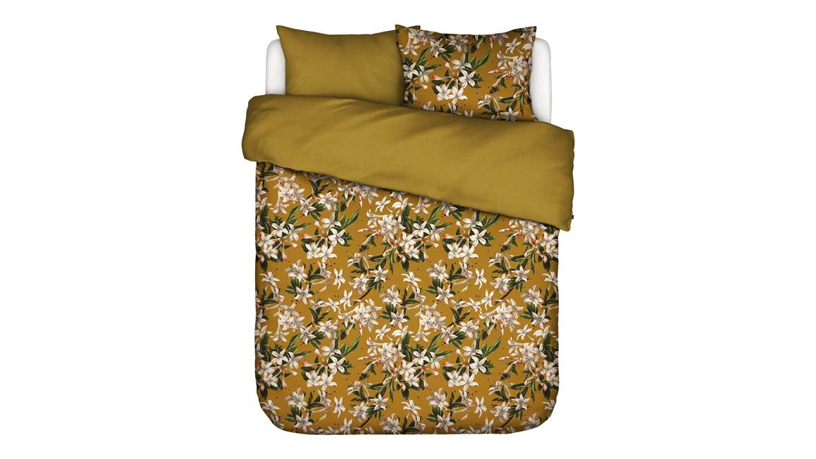 Laissez-vous inspirer par l’ambiance ensoleillée et estivale de la housse de couette Verano d’Essenza, de couleur ocre ! Cette nuance de jaune chaleureuse fait ressortir le blanc des lys et le vert des feuilles. Couette rabattue, le motif graphique composé de petites croix du côté verso donnera un aspect chic et soigné à votre lit.