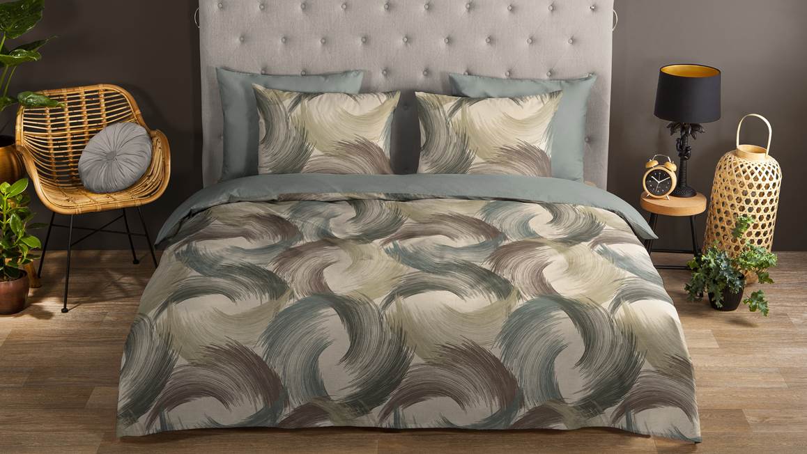 La housse de couette Gaston de Good Morning ajoute une touche artistique à la chambre. Les couleurs neutres de son motif graphique à effet coup de pinceau instaurent une ambiance épurée et aérienne dans une décoration moderne. Grâce au dos uni gris, il suffit de retourner votre couette et vos oreillers pour apaiser la déco.