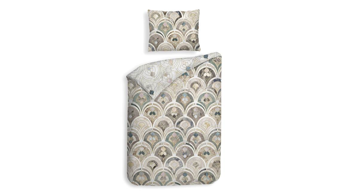 La housse de couette Roxanne de Heckettlane apporte élégance et glamour à la décoration de votre chambre. Les formes arrondies à effet marbre de son motif graphique lui confèrent un petit côté Art Déco résolument très chic. Couleurs foncées ou couleurs claires ? A vous le choix ! Les deux faces de cette parure de lit réversible (taies d’oreiller comprises) présentent le même motif en des nuances différentes.