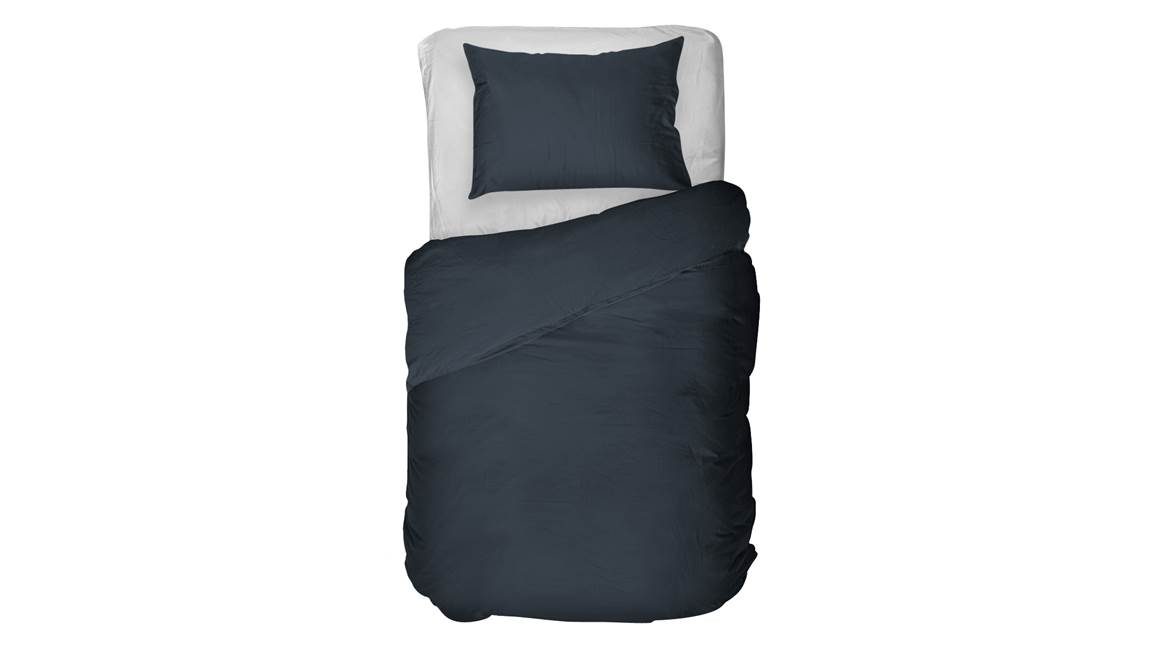 La housse de couette Kai de Kayori au coloris Bleu marine réveille une ambiance feutrée et cosy. Sa couleur profonde et rassurante s’immisce dans la chambre avec beaucoup d’élégance et de modernité. Les taies d’oreiller rectangulaires (comprises) mesurent 60x70 cm.