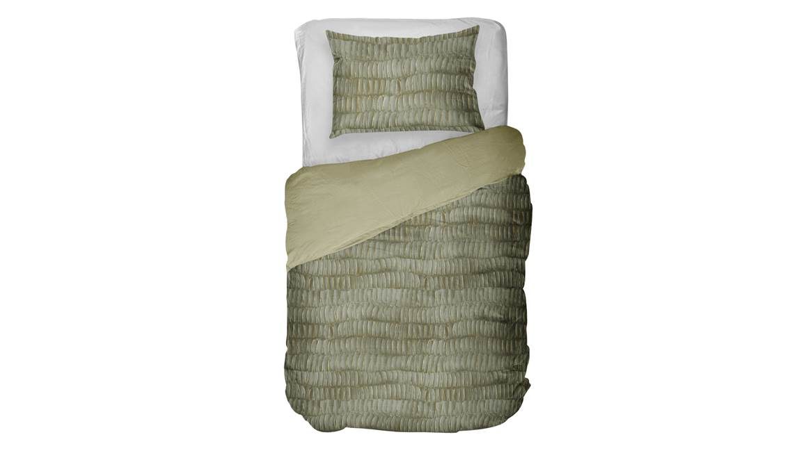 La housse de couette Mina de Kayori allie avec subtilité élégance et naturel. Evoquant la texture organique de l’écorce, son motif graphique aux couleurs naturelles dévoile une ambiance nature 100% cocooning. Réversible, la parure de lit (taies d’oreiller comprises) est conçue avec un dos uni.