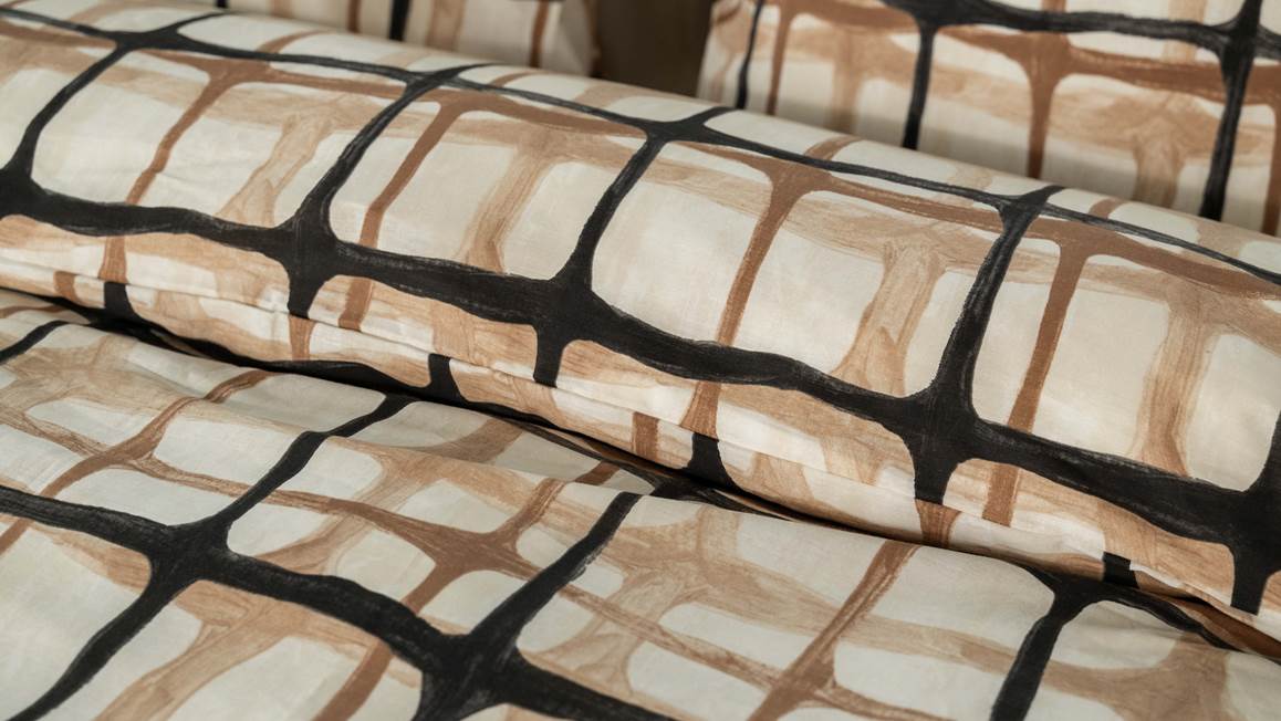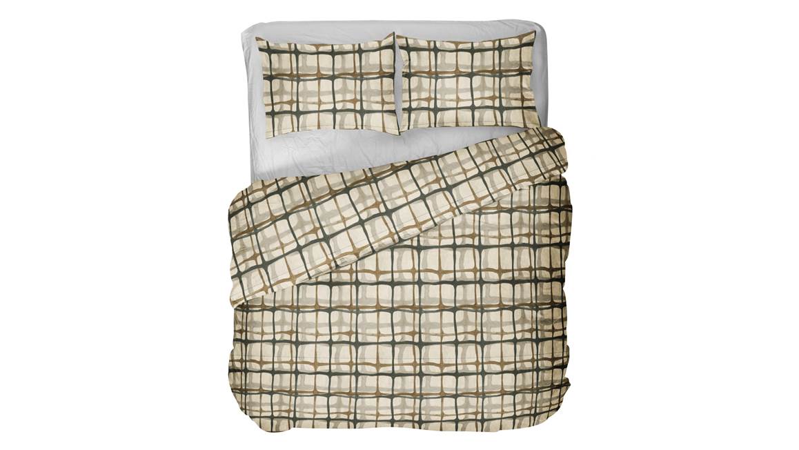 La housse de couette Yasu de Kayori au coloris Sable apporte une touche graphique à une chambre zen et moderne. Ornée de quadrillages superposés en différents tons naturels, elle insuffle une atmosphère chaleureuse et cosy à la pièce. Les taies d’oreillers rectangulaires (60x70 cm) sont comprises dans la parure de lit.