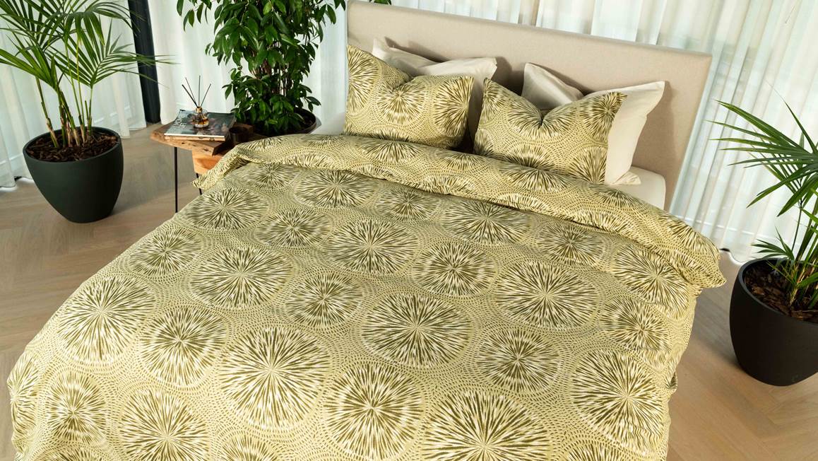 La housse de couette Yuka de Kayori évoque les motifs traditionnels du batik balinais. Les tons de vert kaki et olive de son motif graphique soulignent le style Ethnique Chic, insufflant une atmosphère paisible et harmonieuse dans la chambre. La parure de lit est assortie avec les taies d’oreiller (de 60x70 cm).