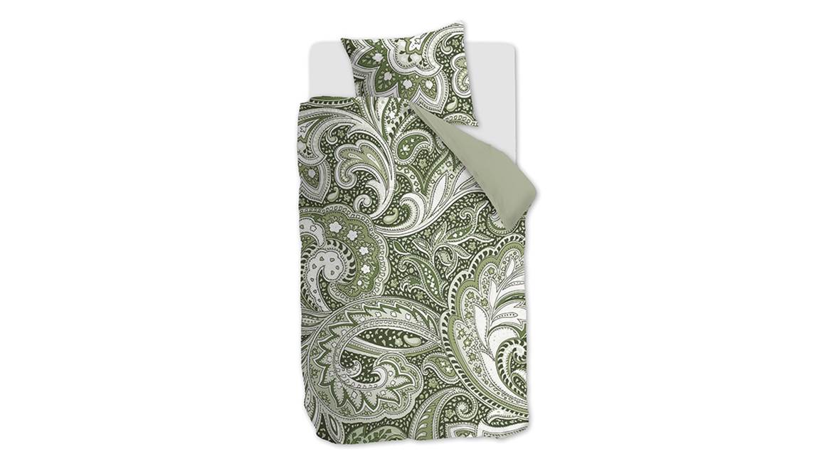 Adoptez la tendance Paisley avec la housse de couette Indara de Snoozing ! Ce motif graphique à l’esprit floral vient dégager du charme dans une décoration vintage chic. Se déclinant dans un camaïeu de verts et blancs, il apporte de la fraîcheur à la pièce. La parure de lit double face (dos uni blanc) comporte les taies d’oreiller assorties.