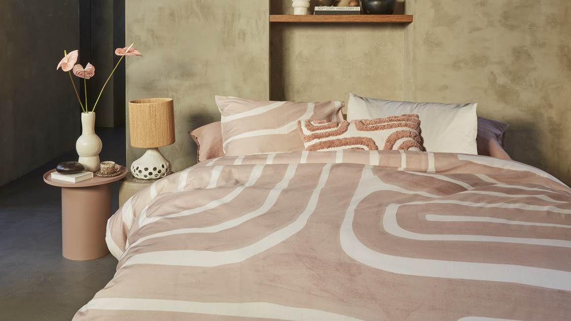 Ambiance naturelle et dépaysante pour la housse de couette Tribu de VT Wonen au coloris Poudre. Elle est rehaussée d’un motif graphique à l’esprit ethnique, composé de lignes irrégulières à effet aquarelle. La housse de couette et ses taies d’oreiller assorties ont un dos uni.