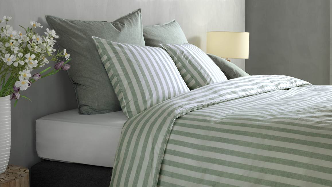 Créez une ambiance bord de mer dans votre chambre avec la housse de couette Banda di Lino de Zohome ! Son tissu à effet lin et ses rayures blanches et vertes donnent un air estival à la déco, en toute légèreté. Cette parure de lit double face (taies d’oreiller comprises) vous offre le choix entre des rayures verticales sur le côté devant et des rayures horizontales au dos.